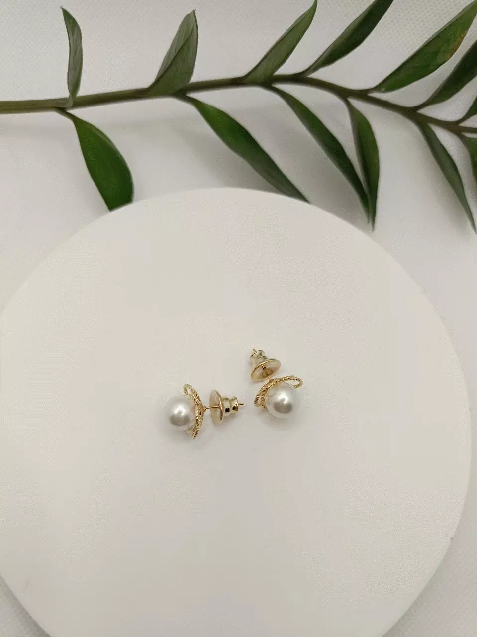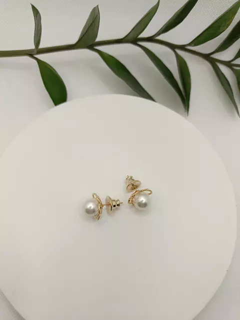 BRINCO DUAS ESFERAS PEROLA E CRAVEJADA DOURADO