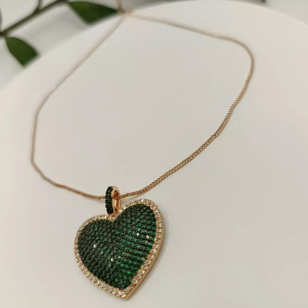 COLAR CORAÇÃO ZIRCONIA VERDE