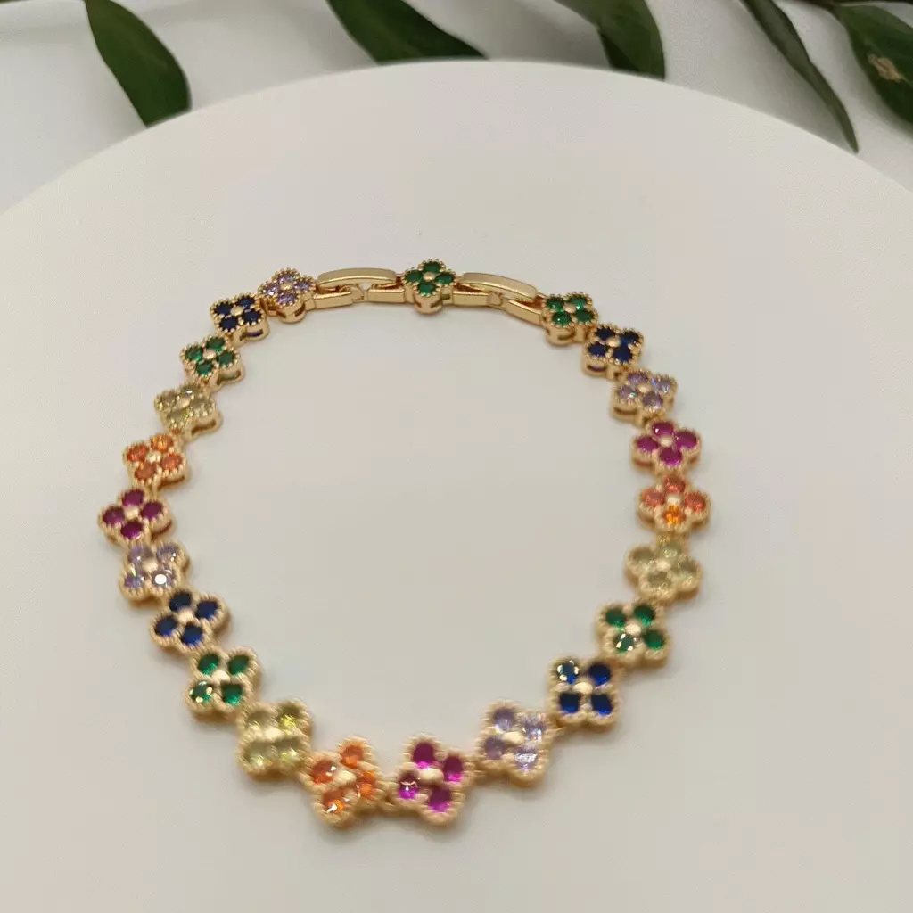 PULSEIRA TREVO COLORIDA ZIRCONIA